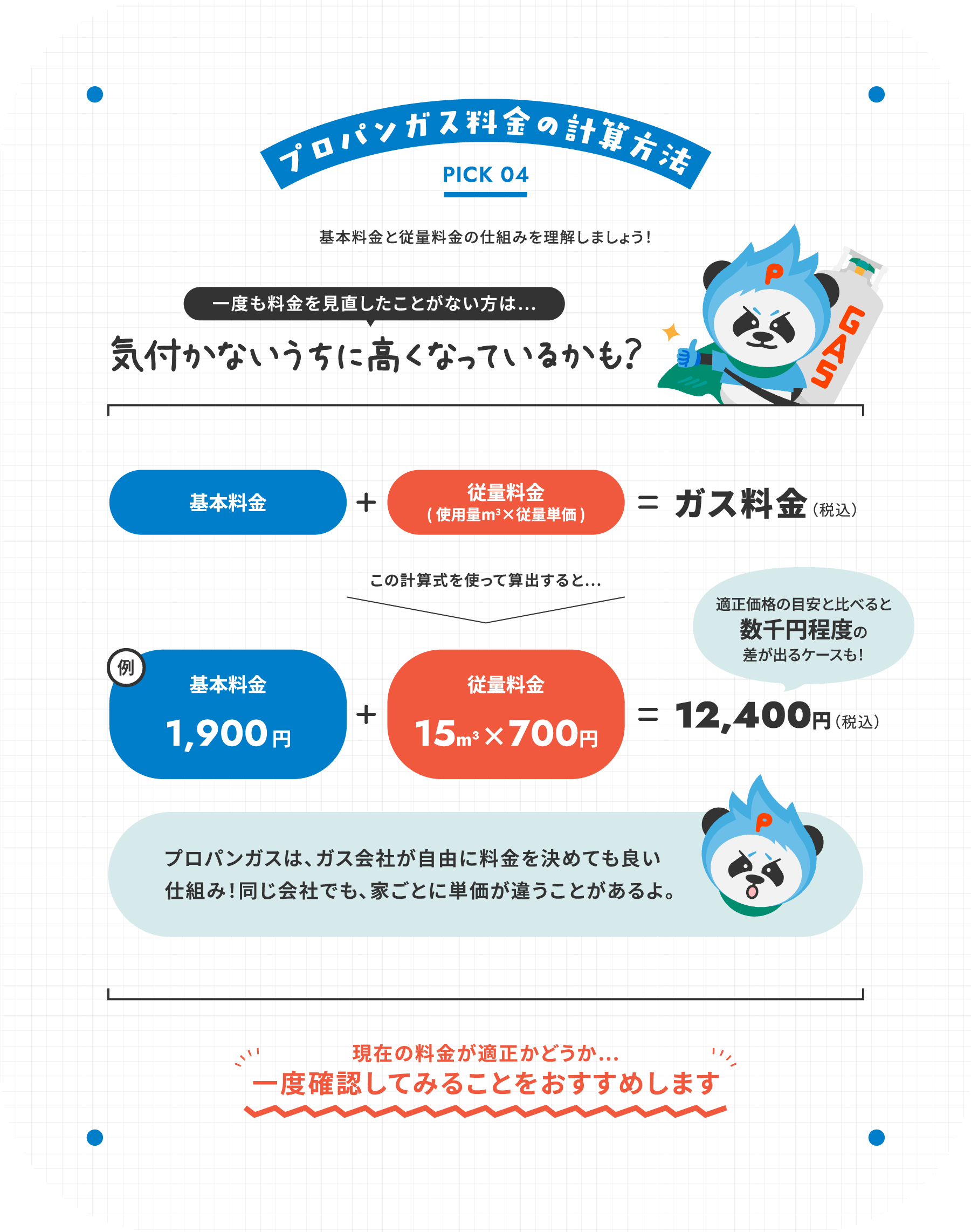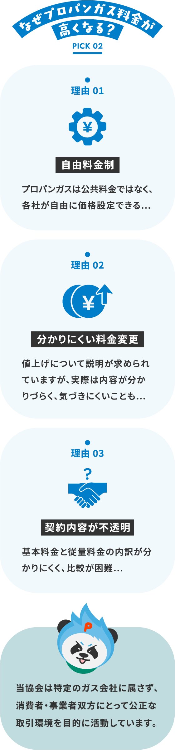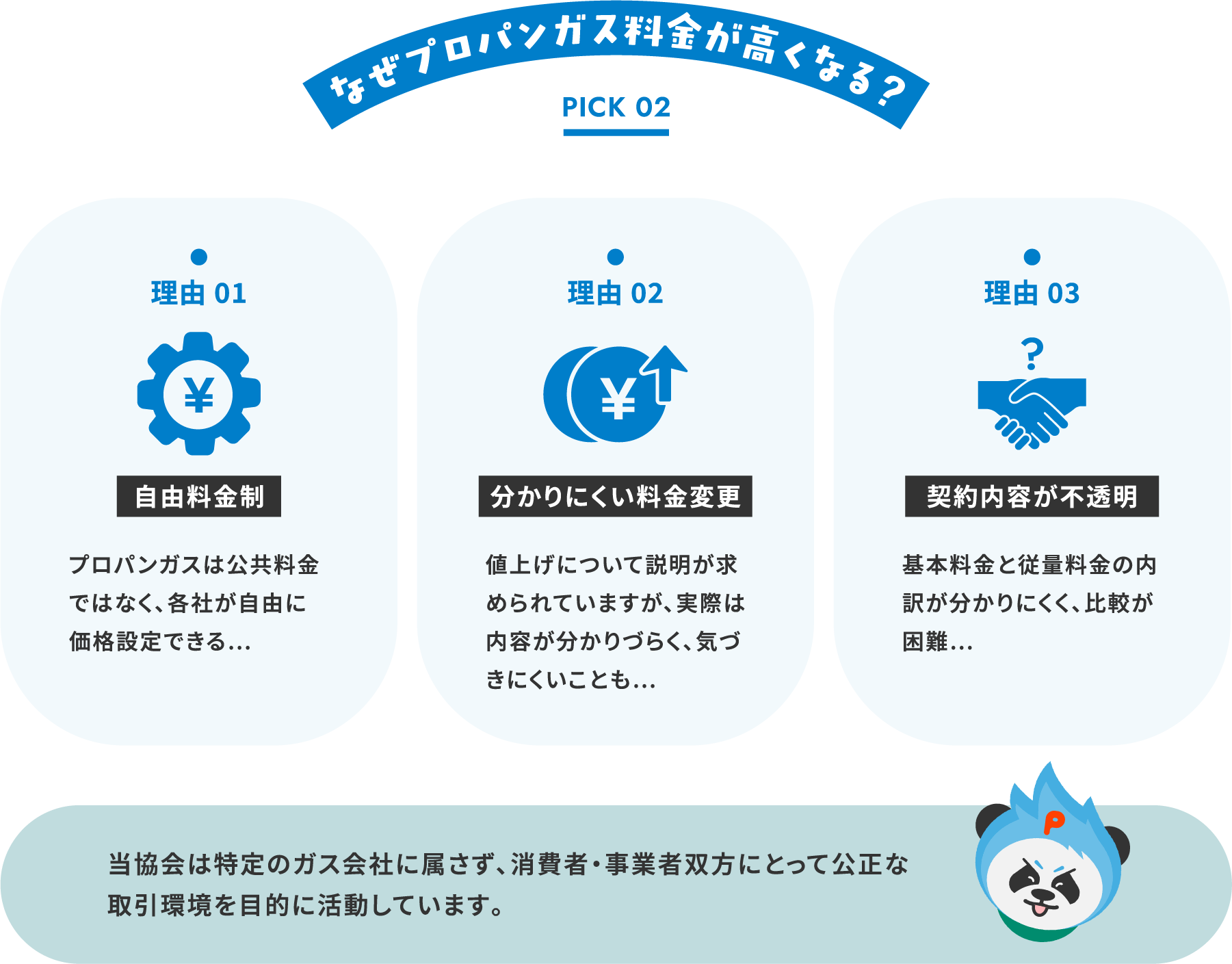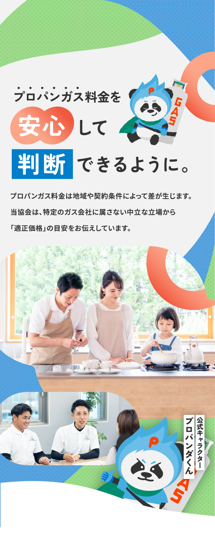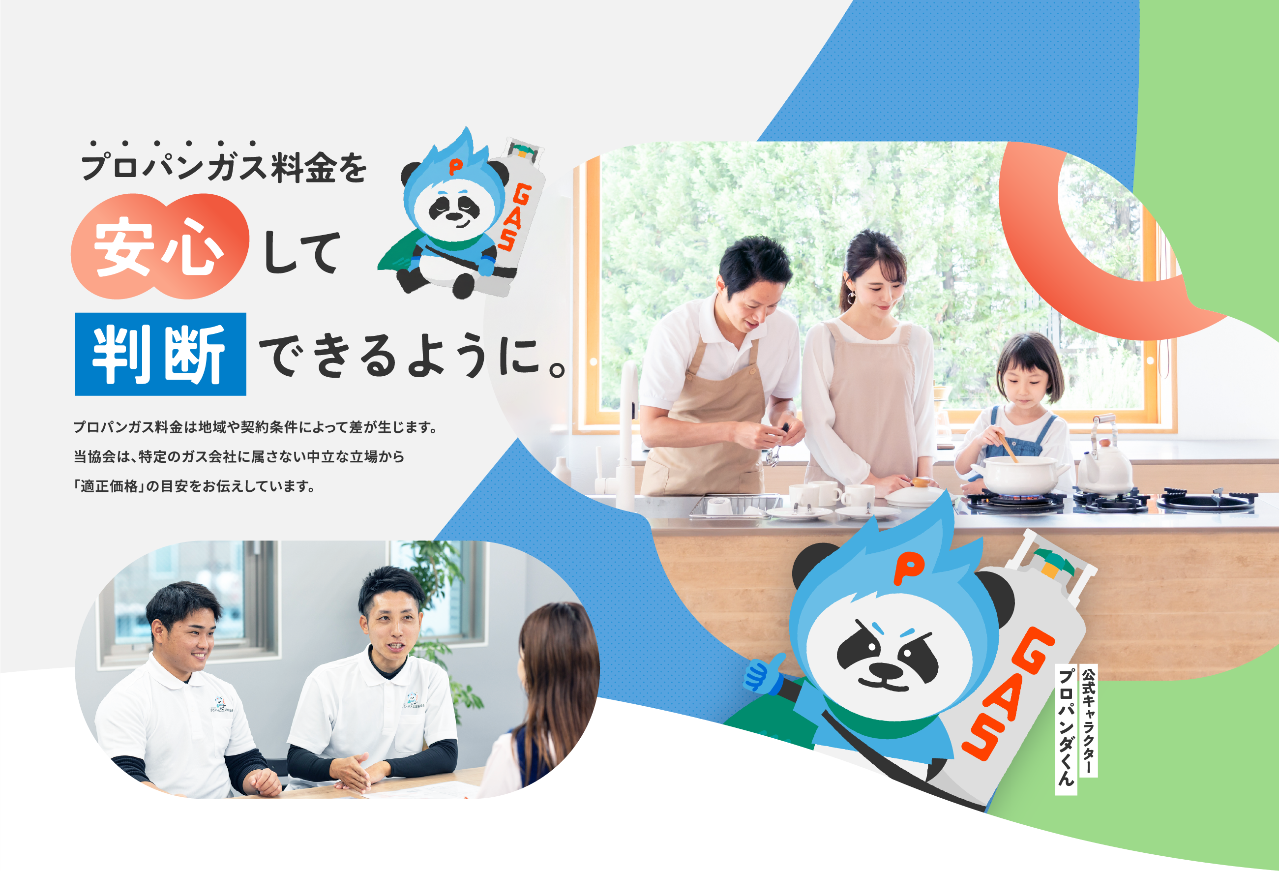 プロパンガス公正取引協会は、特定の事業者に属さない中立な立場から、適正な価格の目安をお伝えすることで、安心してガス会社を選ぶための判断材料を提供します。